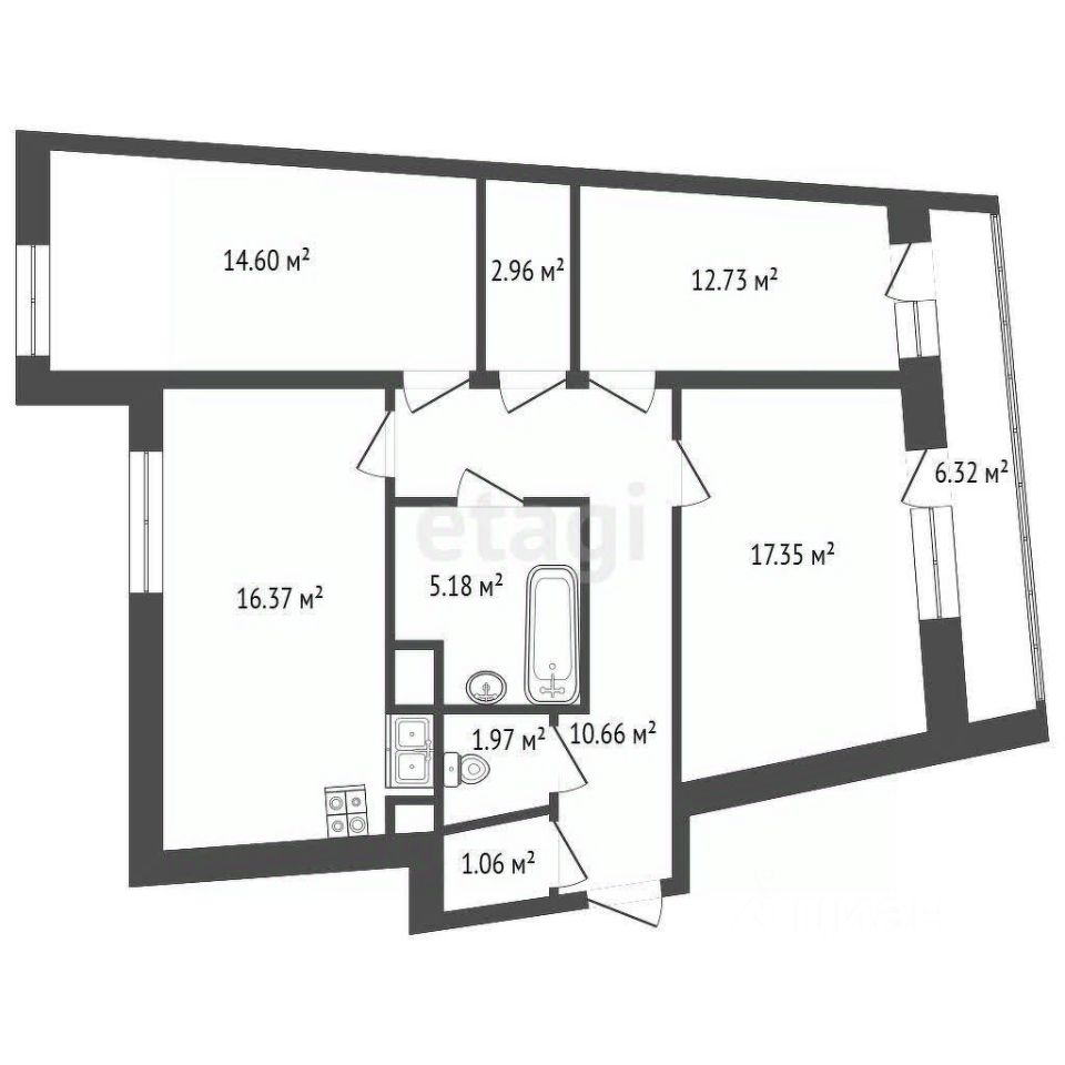 * Квартира отличается рациональной планировкой с тремя изолированными комнатами площадью 13, 14 и 17 кв.м, что обеспечивает комфорт и приватность для всех членов семьи.