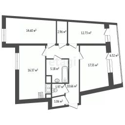 Просторная трехкомнатная квартира площадью 74 кв.м расположена в современном жилом комплексе "Живи в Рыбацком" в шаговой доступности от станции метро "Рыбацкое".