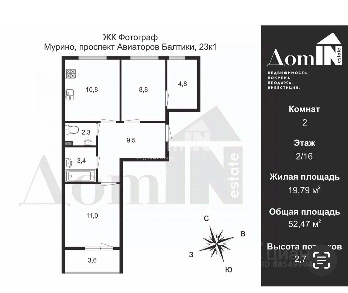 Арт. 120981556 Продается отличная двухкомнатная квартира в ЖК Фотограф. Дом построен, скоро будут выданы ключи.