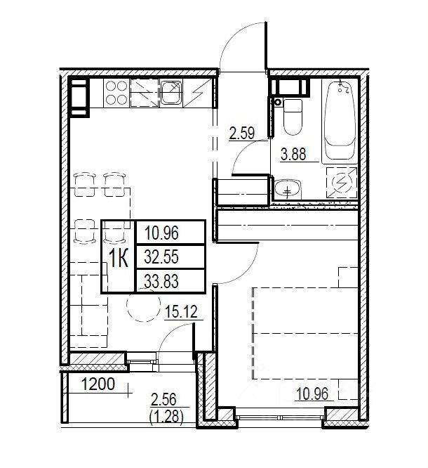 - Куxня-гостиная 15,2 кв. М.