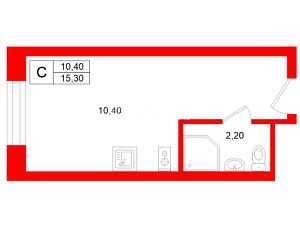 Апартаменты общей площадью 15,3 м2, расположенные на 19 этаже.