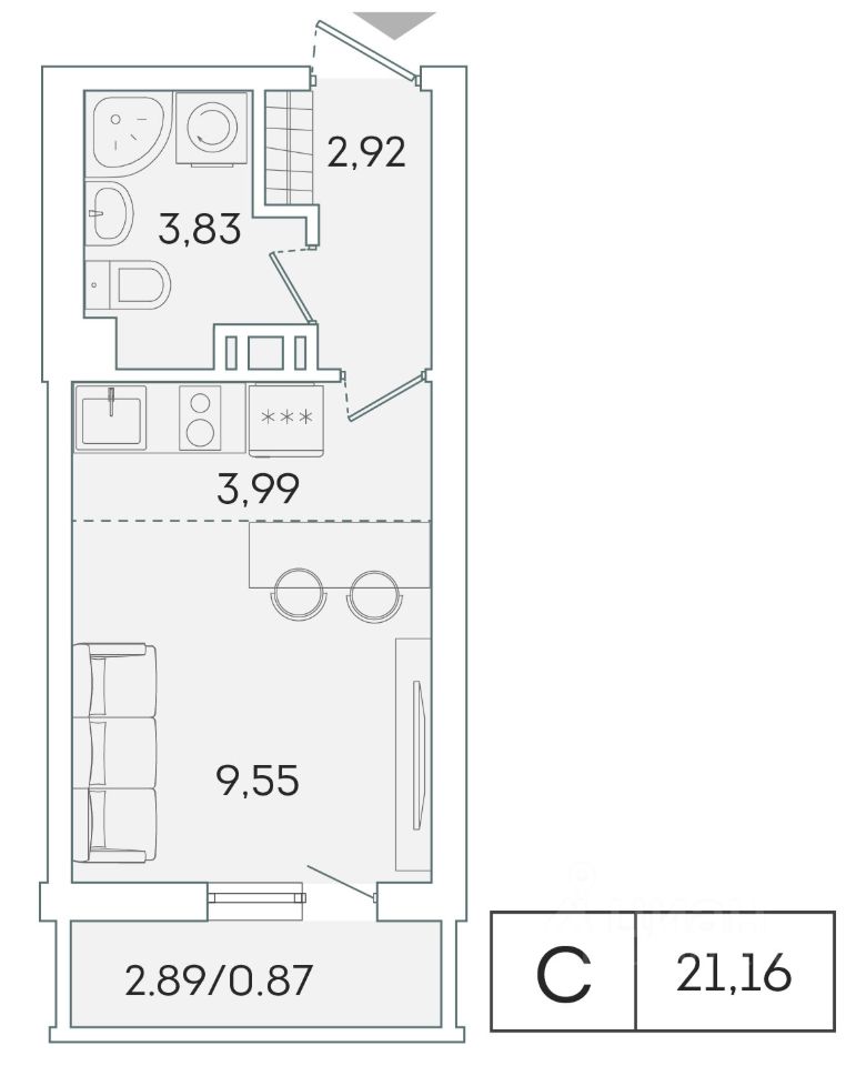 В продаже от застройщика студия 20.4 кв. м с черновой отделкой и практичной планировкой для удобной организации пространства. Корпус сдан