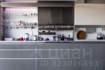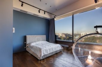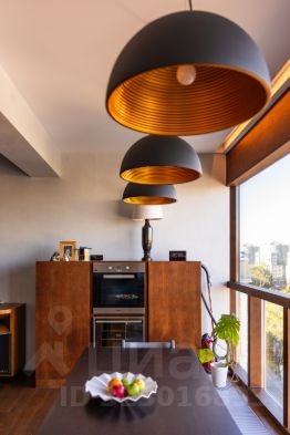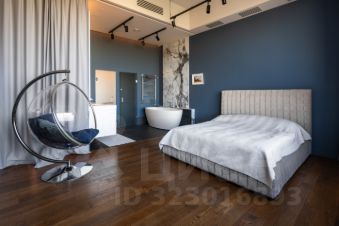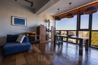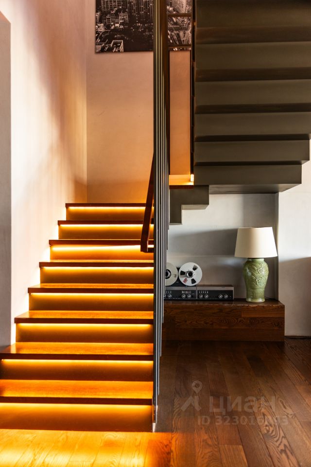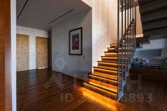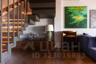 Функциональная планировка включает кухню-столовую, детскую, кабинет, гардеробную и санузел. Высота потолков на первом уровне — 3,2 метра. Установлена кухня Valcucine , бытовая техника Miele. На втором уровне, с потолками 4 метра, расположена мастер-спальня с отдельным санузлом и выходом на крышу. В квартире установлены системы канального кондиционирования и приточно-вытяжной вентиляции. Пространство наполнено естественным светом благодаря окнам по обеим сторонам квартиры. Есть подземный паркинг.