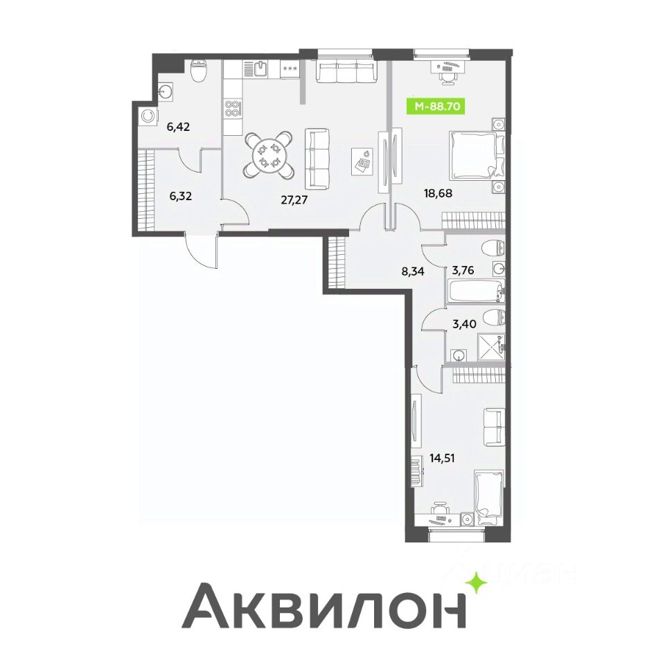 Продаётся 3-комнатная квартира в сданном доме (Аквилон Leaves), срок сдачи: I-кв. 2025, общей площадью 88.7 кв.м., на 1 этаже. Жилой комплекс "Аквилон Leaves" представляет собой 12-этажное монолитно-кирпичное здание. На территории дома предусмотрены детские игровые и спортивные площадки, зона для отдыха взрослого населения, озеленение, автостоянка и подземная парковка.