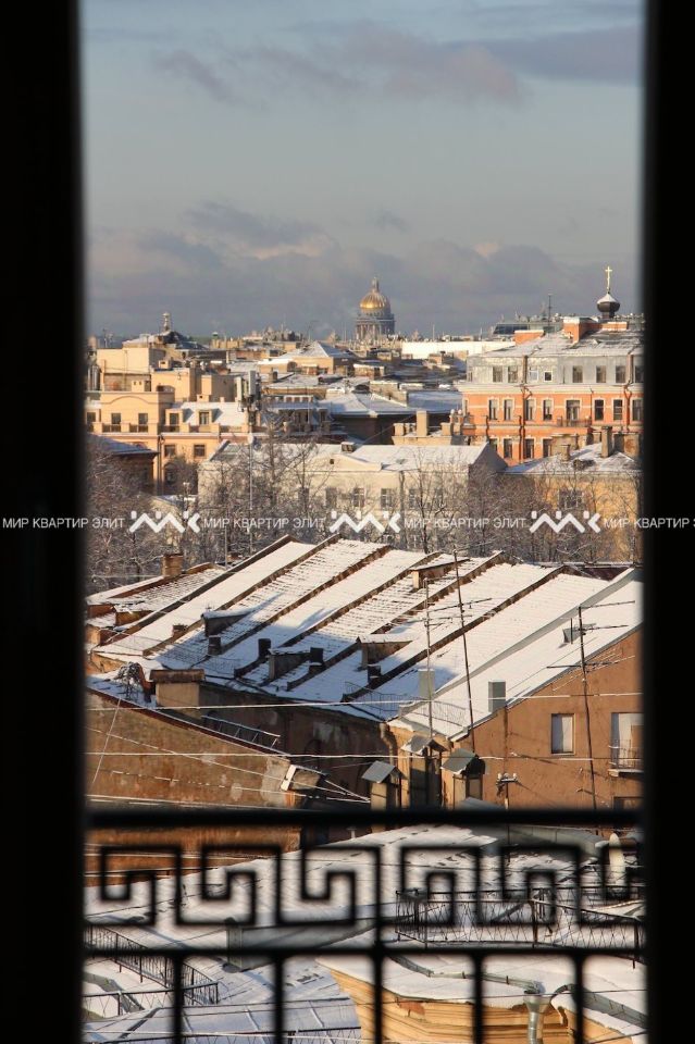 Засчет высокого этажа, больших окон и эркера, в квартире очень светло. Перед вами красивый вид "По крышам Петербурга".