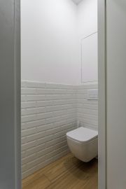 - керамогранит уложен поверх электрического тёплого пола в санузлах, коридоре и на кухне - устойчив к износу, а ноги всегда в тепле;