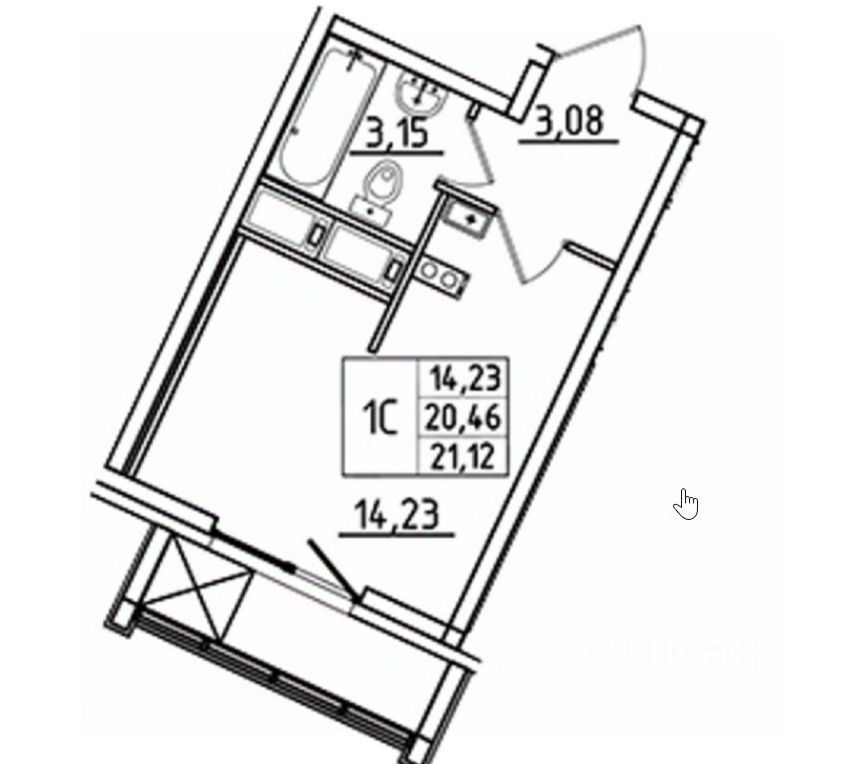 Продается квартира-студия в новостройке, на 17 этаже 20-этажного дома.