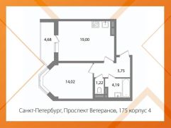 • Кухня-гостиная - 19 кв.м с выходом на лоджию + 4,68 кв.м