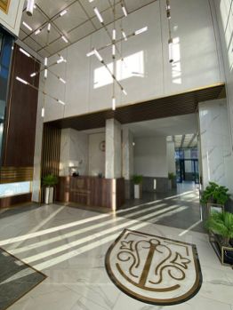 • Вход в жилой комплекс организован через центральную входную группу с стойкой ресепшен, лобби зона оформлена в классическом стиле.