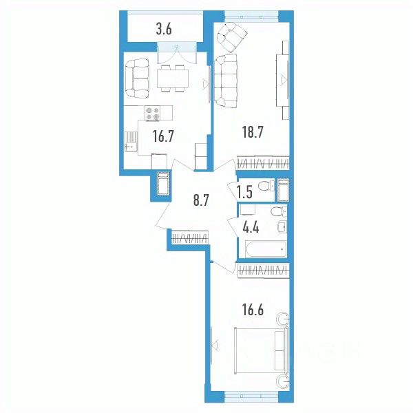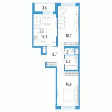 Продаётся 2-комнатная квартира в сданном доме (Головнина, 3к1), срок сдачи: II-кв. 2023, общей площадью 68.4 кв.м., на 18 этаже.