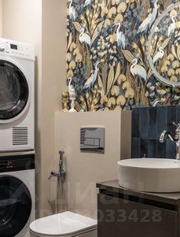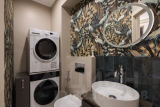 Второй санузел котором размещены стиральная машина, машина сушки.