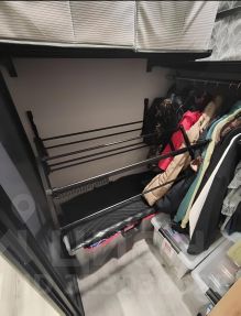 Новому собственнику по договорённости остается вся техника и мебель. Рабочие зоны и зоны хранения сделаны на заказ. В гардеробной продуманы зоны хранения, а так же установлена сушилка.