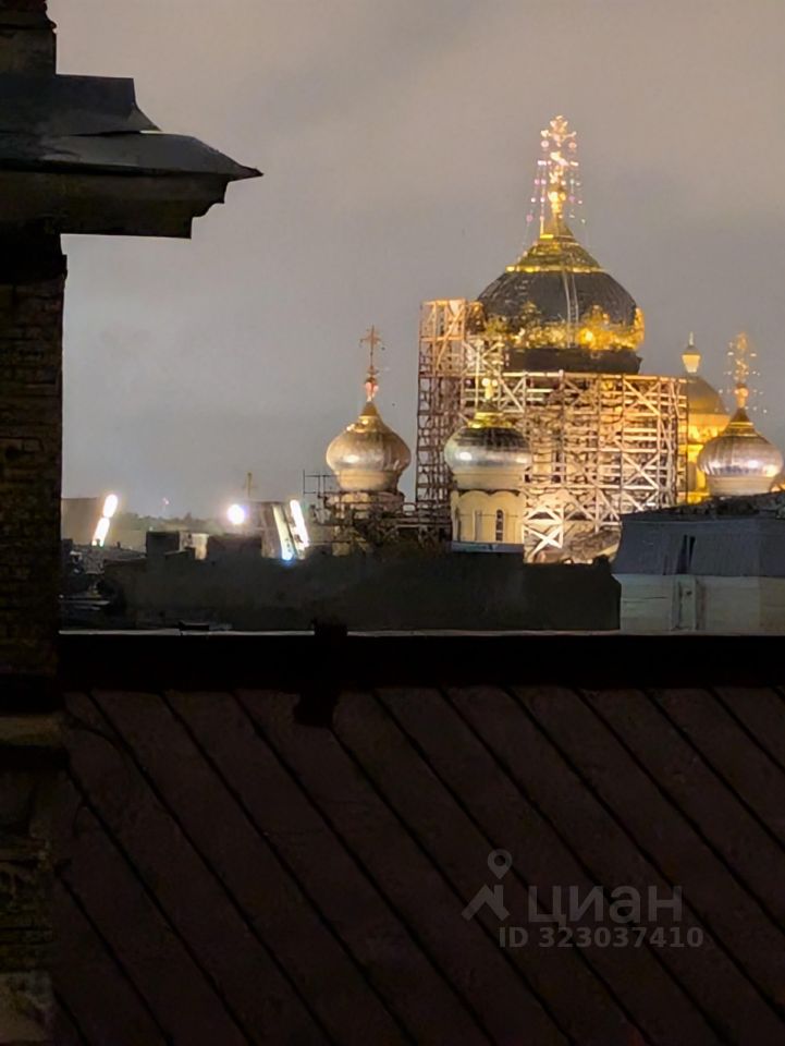 Видовая комната с собственным балкончиком, с которого открывается вид на купола собора Оптиной пустыни, Исаакиевского собора и разведённый Благовещенский мост, крыши, Неву и перспективу улиц, восход с одной стороны и закат с другой. Комната светлая, просторная, правильной формы. В комнате выровнены стены, есть встроенная мебель, которая при желании остаётся покупателю. На окнах стеклопакеты, была проведена смена батарей, электропроводки. В квартире просторная кухня 23 м, где был выполнен косметический ремонт. В 1965 году была проведена реконструкция дома. В доме есть лифт, что большая редкость для старого фонда. В 2017 году был произведен ремонт крыши, системы теплоснабжения, в 2018 - ремонт систем газоснабжения и электроснабжения. Квартира малонаселенная, есть перспектива выкупа соседних комнат. Двор закрыт, есть возможность парковки во дворе.