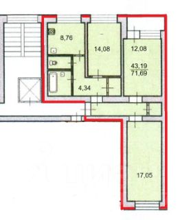 Общий метраж 71.69 кв м, жилая 43.9 кв м.
