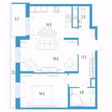 Продаётся 2-комнатная квартира в сданном доме (Головнина, 3к1), срок сдачи: II-кв. 2023, общей площадью 72.5 кв.м., на 5 этаже.