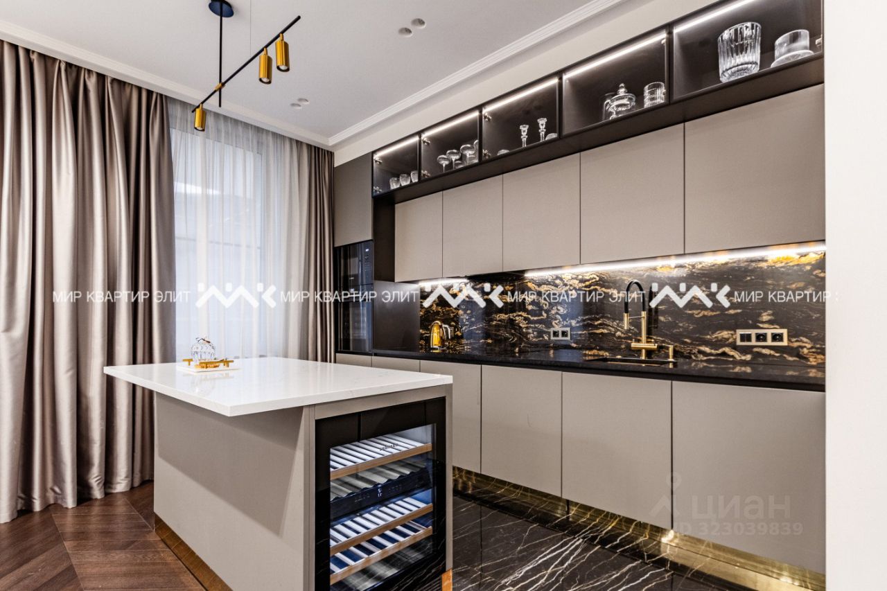 Квартира укомплектована бытовой техникой премиум-класса: два холодильника и винный шкаф Liebherr, стиральная и сушильная машины Asko, а также варочная панель и посудомоечная машина Bosch.