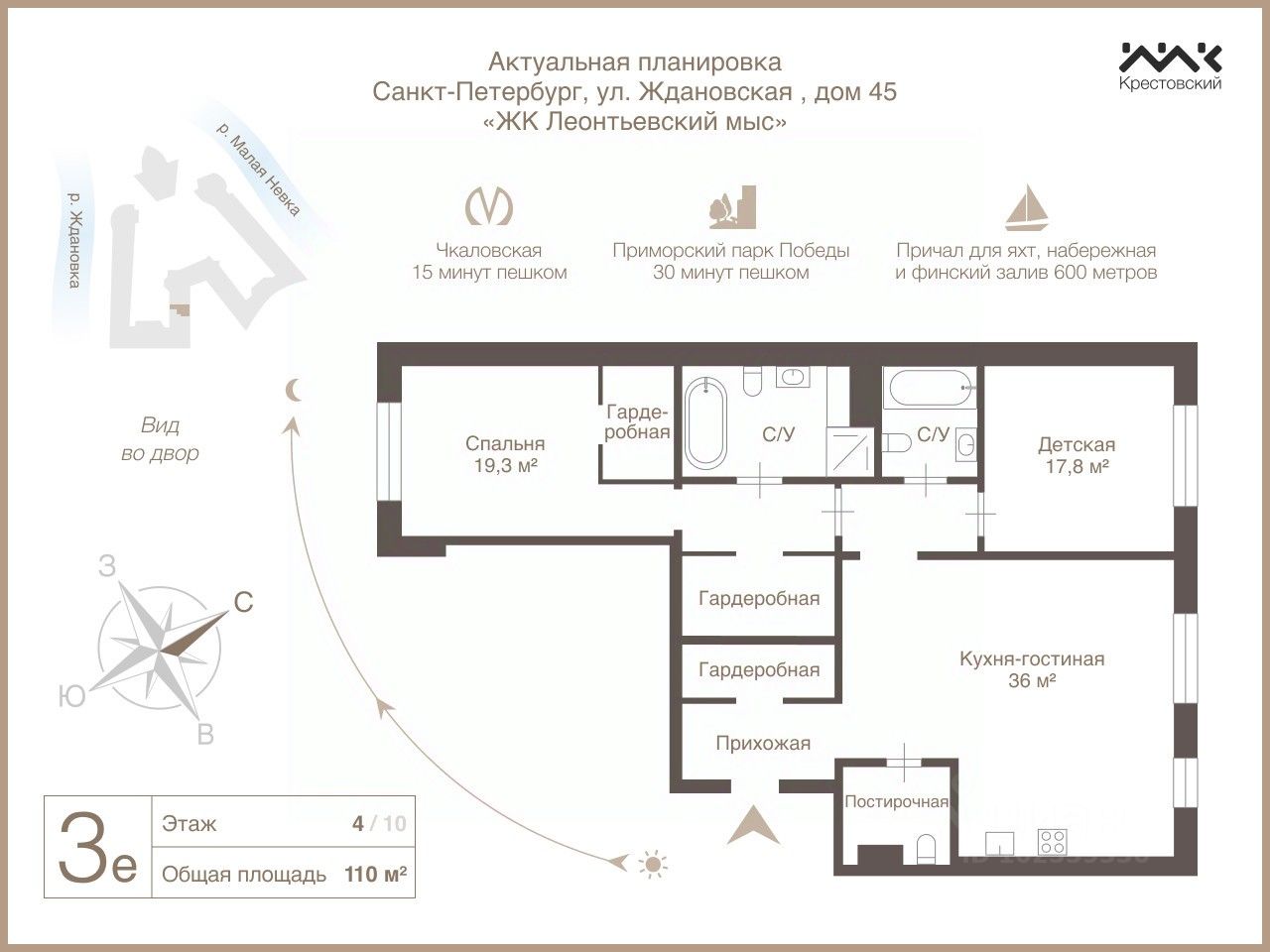 Арт. 120127357 Эта квартира с дизайнерским ремонтом в элитном комплексе "Леонтьевский Мыс" представляет собой уникальное сочетание безупречного комфорта, статусной локации между двух рек и насыщенной собственной инфраструктуры.