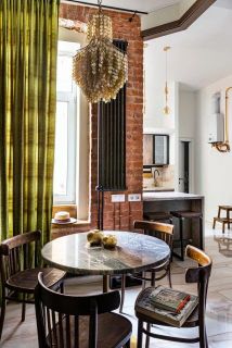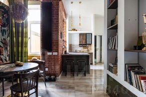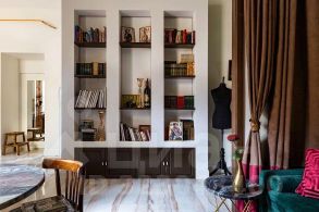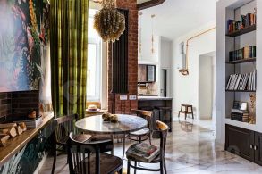 В интерьере квартире талантливо соединены антикварные предметы и современная мебель.