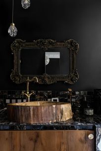 Использовано многоуровневое освещение: выразительные люстры, сдержанные светильники и просто функциональный торшер. Выбор материалов поражает своим многообразием и сочетанием ( камень и дерево). Многожеством ярких красок декора и текстиля.