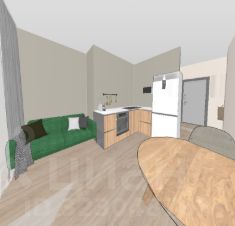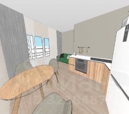 Кухня просторная, подходит для полноценной обеденной зоны и отдыха