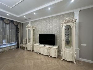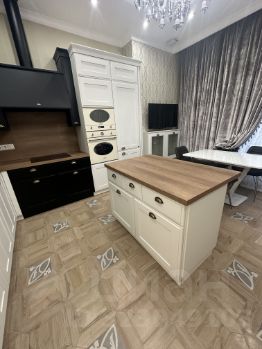 В квартире выполнен дизайнерский ремонт из премиальных импортных материалов- коллекционная итальянская плитка, бельгийская паркетная доска ( массив), экологичные обои, системы кондиционирования, все продумано до мелочей для вашего комфорта. Просторная кухня оборудована современной техникой Smeg . Элегантная мебель идеально вписывается в интерьер, создавая уютную и стильную атмосферу.