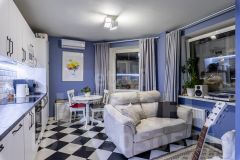 Эта квартира впечатляет с первого взгляда. Просторная кухня-гостиная с выходом на балкон. Кухня современная оборудована всей необходимой техникой и стильно оформлена.