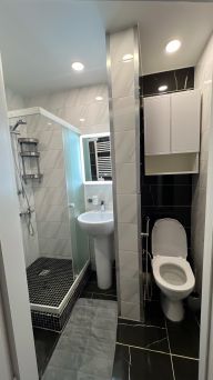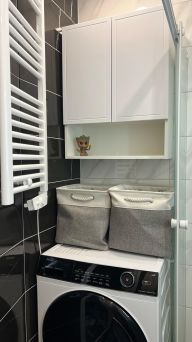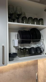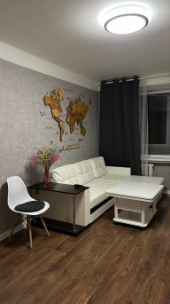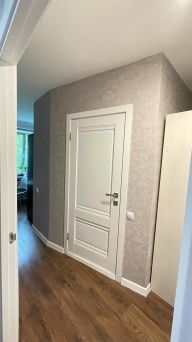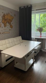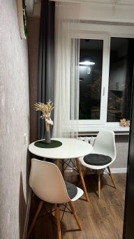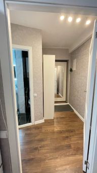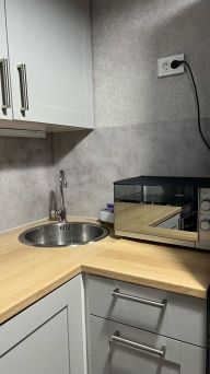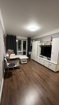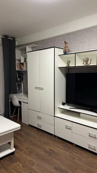 В квартире сделан евроремонт в серо-бело-черной тонах, все выполнено с большим вкусом и вниманием к деталям. На кухне, в комнате и санузле установлена современная мебель и техника (оставляю новому владельцу), поэтому можно сразу заехать и жить. Санузел совмещенный, в хорошем состоянии. Есть балкон, с выполненной отделкой и остеклением, с потолочной сушилкой для вещей.