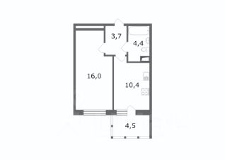 Общая площадь квартиры составляет 34.5 кв. м, комната 16 кв. м., кухня 10.4 кв. м., просторный балкон. Квартира расположена на 8 этаже 11-этажного дома. Высокие потолки 2.7 метра создают ощущение простора. Окна выходят во двор, что защищает от городского шума и обеспечивает тишину и уют.