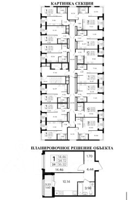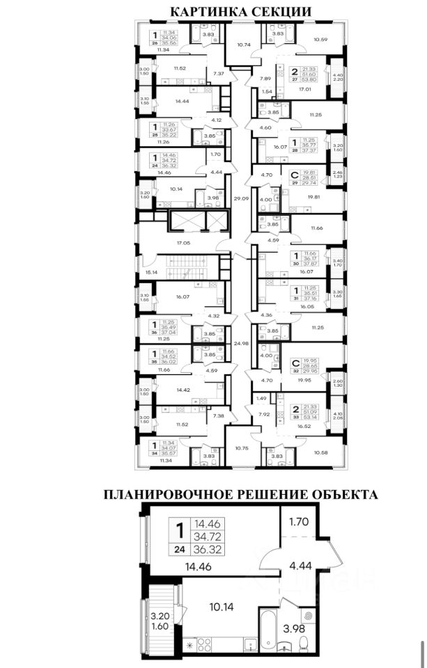 общая площадь Объекта (без учета площади балконов, лоджий или террас) - 34,72 кв.м.