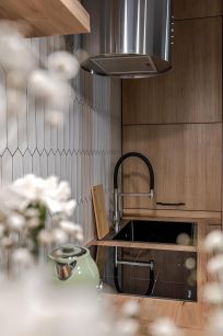 В квартире выполнен ремонт по индивидуальному дизайн-проекту с применением исключительно качественных материалов. На кухне установлена техника немецкого производителя Wеissgаuff- вытяжка, варочная панель, духовой шкаф, посудомоечная машина и встроенный холодильник, фильтры на питьевую воду. На кухне установлена барная стойка и стулья. Кухню заказывали специально для этой квартиры и каждая деталь данной кухни продумана. Также установлены доводчики немецкого производства.