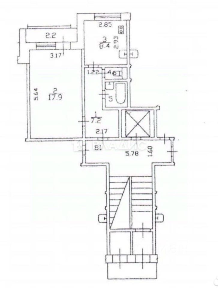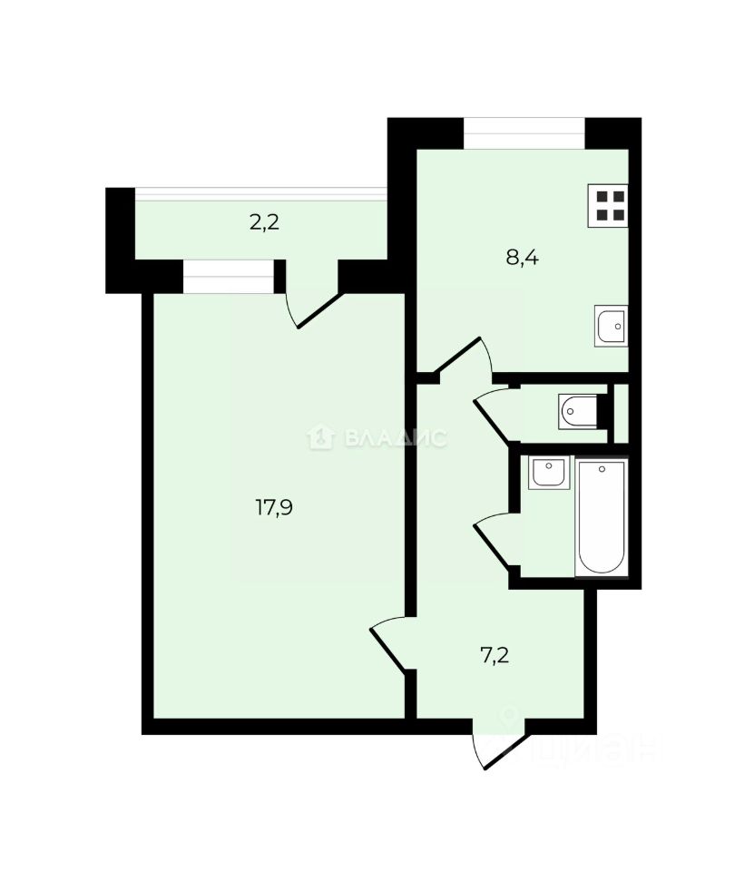 - Общая площадь составляет 37,1 м2, жилая - 17,9 м2