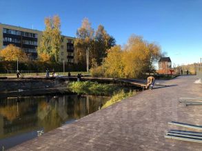 За домом есть футбольное поле, а зимой заливают бесплатный каток — дети и взрослые с удовольствием проводят здесь время. Поблизости строится современный спортивный комплекс.