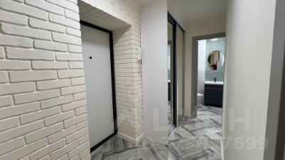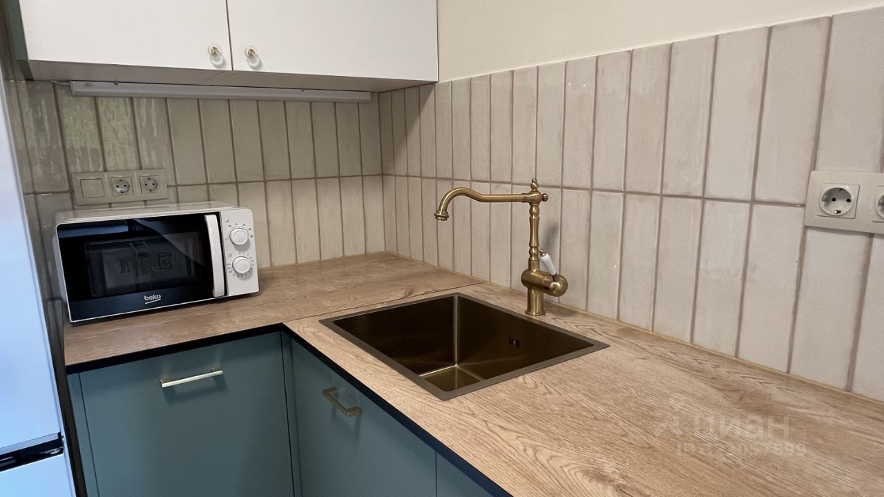 Квартира оснащена кухонным гарнитуром, шкафом-купе и техникой.