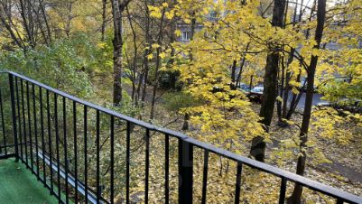 Рядом с домом много зелени, окна квартиры выходят во двор, где всегда очень тихо, свежо и прекраснейший вид на клёны.
