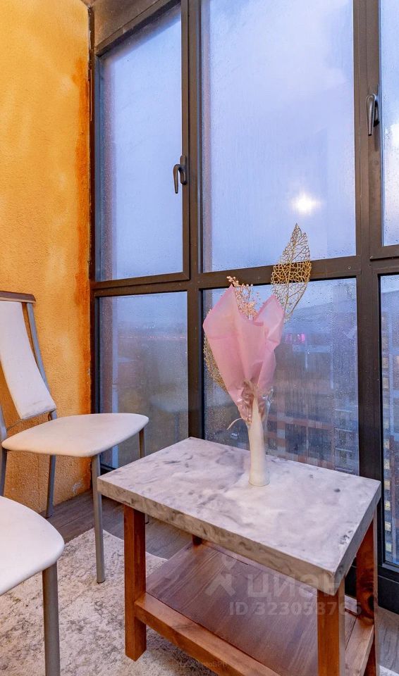 Планировка студии продумана до мелочей: совмещенный санузел и окна, выходящие во двор, обеспечивают комфорт и уют. Кухня полностью оборудована, а просторная лоджия служит дополнительным местом для отдыха.