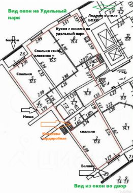 -2 х сторонняя квартира ( ВИД Удельный парк +ДВОР )