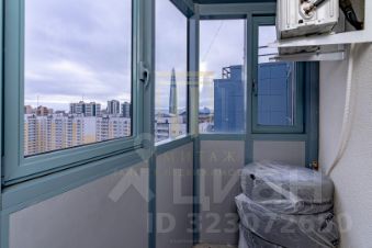 Интерьер выполнен с использованием качественных материалов, включая плитку в прихожей и на кухне, паркетная доска в жилой зоне. Грамотное зонирование комнаты позволяет разделить комнату для работы и отдыха одновременно. Из окна кухни открывается живописный вид на знаменитую башню Лахта Центра. В прихожей оборудована просторная и функциональная гардеробная