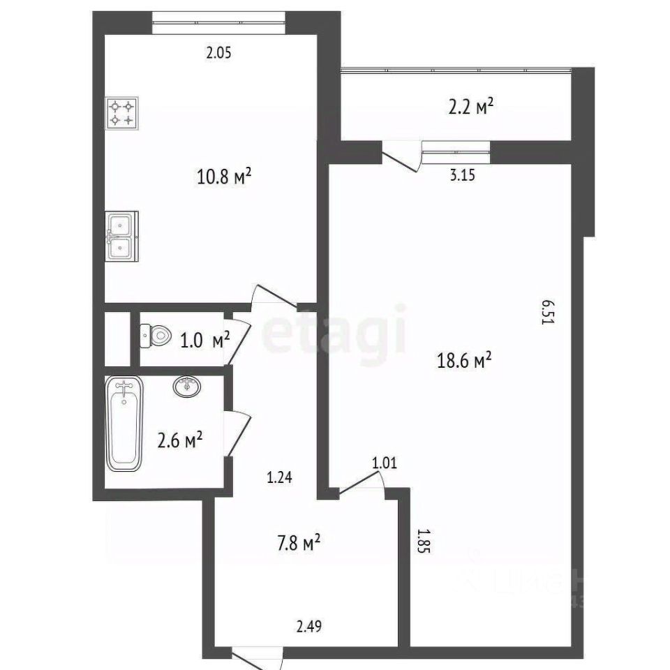 Общая ПЛОЩАДЬ квартиры 40,8 кв.м.