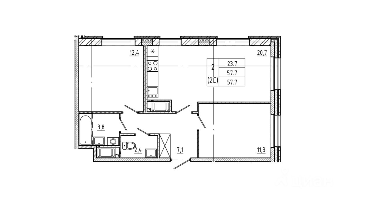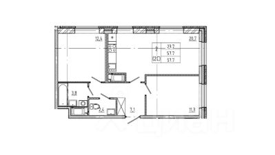 2-комнатная квартира 57,7 м² в ЖК Большая Охта (бизнес-класс)