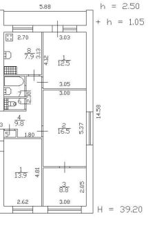 Просторная планировка:                                   3 комнаты площадью 16,5м², 12.5 м² и 9 м².                         - Общая площадь 59м.