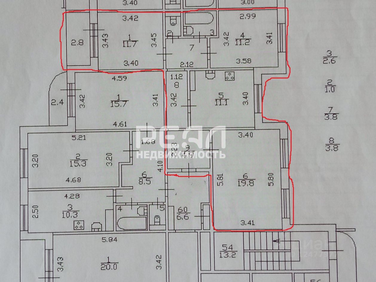 -все три спальни 19,8 , 11,2 и 11,7м2 не имеют общих стен, а граничат друг с другом через помещение;