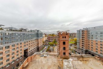 Вписанный в современный архитектурный ансамбль памятник промышленной архитектуры - водонапорная башня, прошедшая реконструкцию для использования под современное публичное пространство
