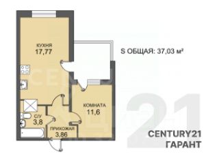 Кухня-гостиная 18м2, отдельная спальня 12м2