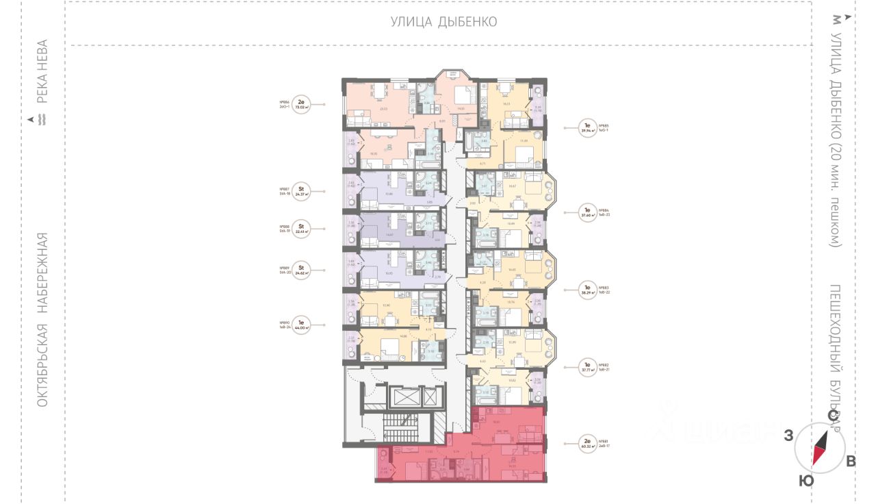 • 5 мин на авто до станции метро "Улица Дыбенко";