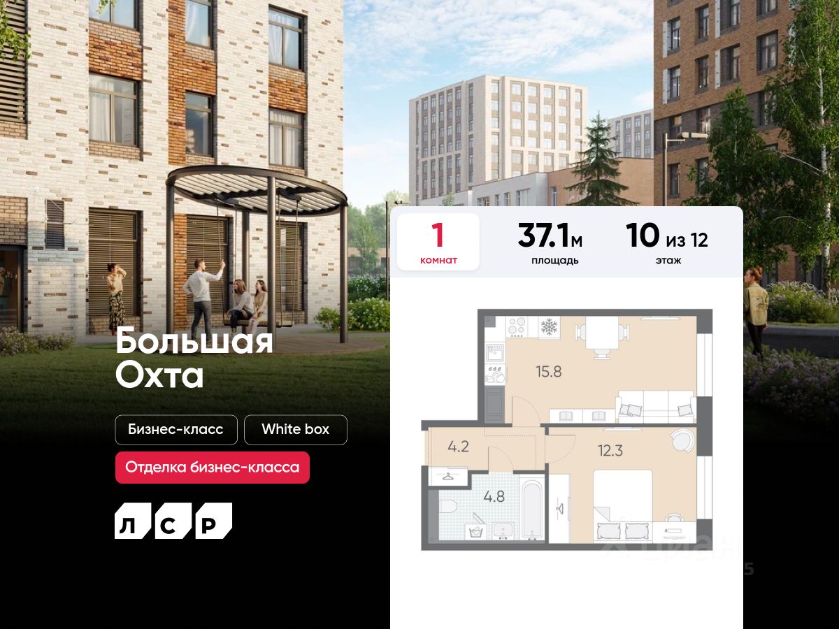 Продаётся 1-комнатная квартира в ЖК "Большая Охта" на 10 этаже. Общая площадь составляет 37.10 кв. м. Квартира с white box отделкой. Жилой комплекс "Большая Охта" располагается по адресу Санкт-Петербург, Красногвардейский.
