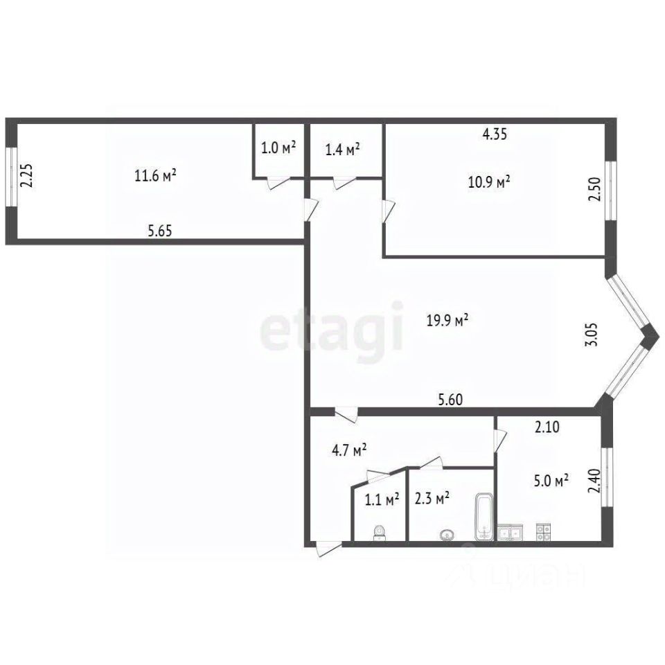 Предлагается к продаже просторная трехкомнатная квартира площадью 57.9 м², расположенная на 3 этаже пятиэтажного кирпичного дома.