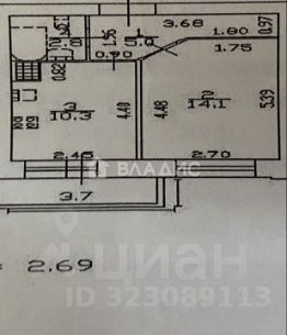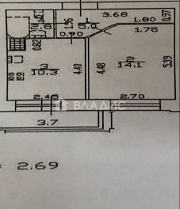 Квартира представляет собой однокомнатное жильё с общей площадью 36 кв. м, жилой площадью 14,1 кв. м и кухней площадью 10,3 кв. м. Высота потолков составляет 2,6 м, что создаёт ощущение простора.