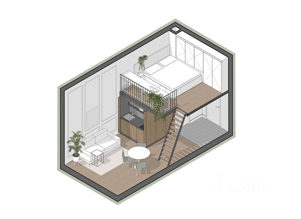 Удачная высота потолков, можно сделать полноценную двухуровневую квартиру - стена между с/у и комнатой не несущая - второй этаж получится полноценной площадью от 12 м2. Итого квартира будет минимум 36 м2.