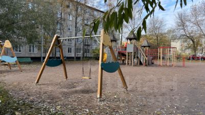 Окна квартиры выходят в зеленый просторный двор. Тишина и спокойствие. Соседей не слышно.