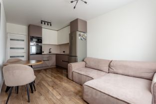В продаже полноценная однокомнатная квартира с большой кухней-гостиной и отдельной спальней. Предусмотрены системы хранения одежды в прихожей и в спальне.
